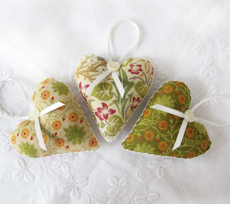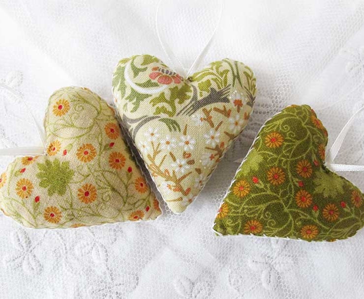 I have a long standing love of lavender and harvest it each year from my garden. Together with my ever growing collection of beautiful fabrics these little hearts help me use up my left over pieces while adding some wonderful fragrance to the home.