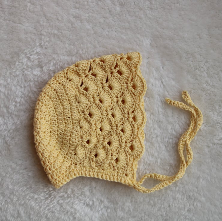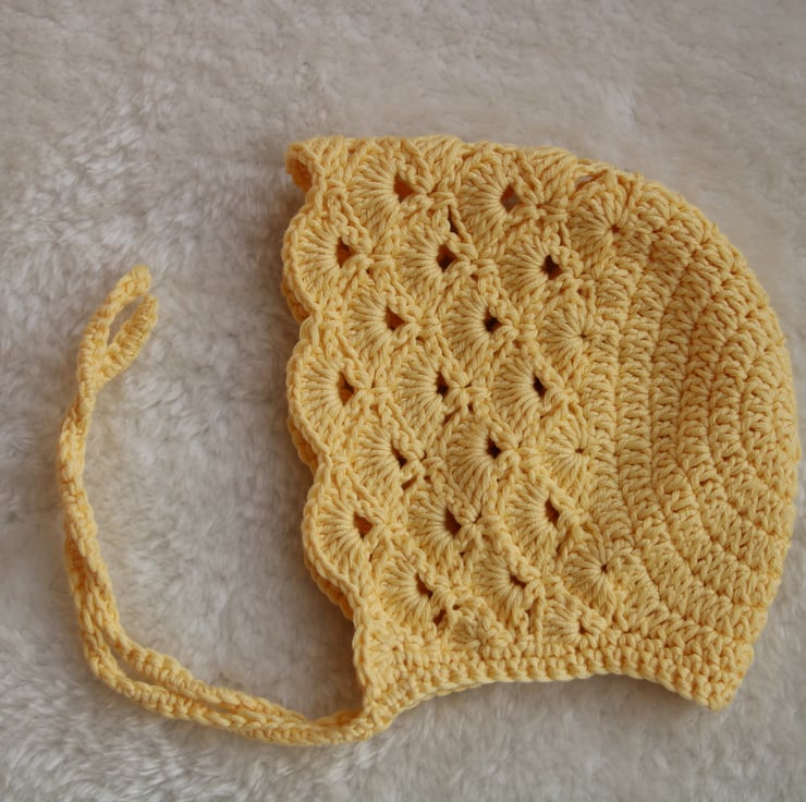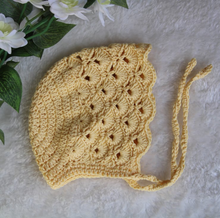 Features a very pretty fan stitch crochet design for a timeless and traditional look that will compliment a spring or summer outfit, use as a prop for a new baby announcement (eg name or gender reveal) or use during a new baby photo shoot to create special memories.