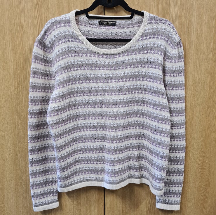 A long sleeve striped jumper in a mix of yarns. Boxy style.