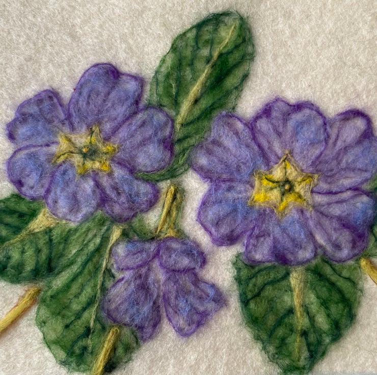 Each of my felted pieces is inspired by the wildlife and landscape around the UK. This primrose piece celebrates the early spring flowers that line local parks and gardens.