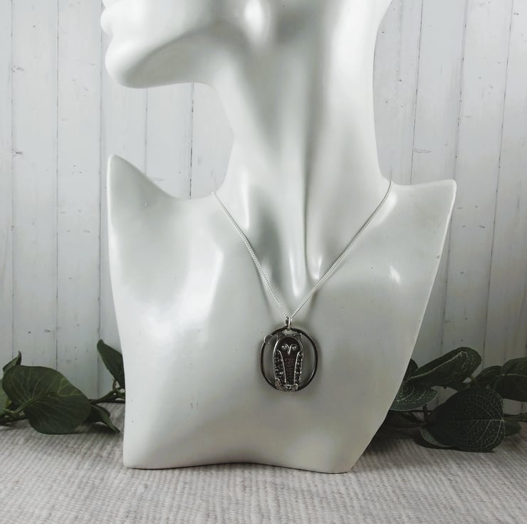Sterling Silver and Copper Owl Necklace. Sustainable silver and copper one of a kind pendant.