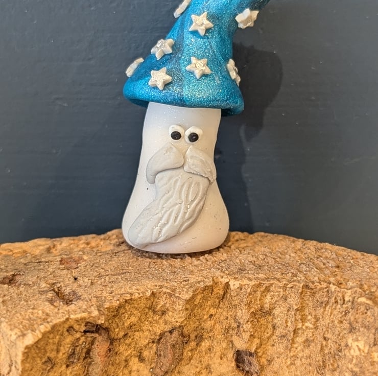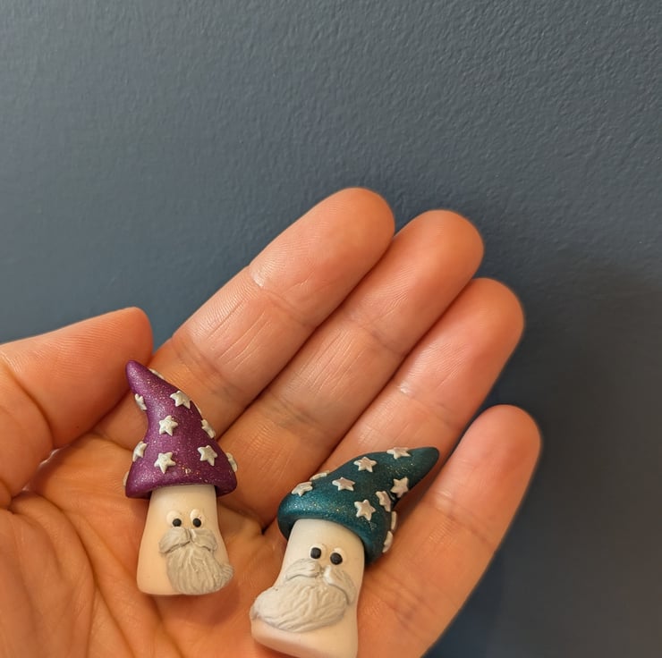 I started making a set of mushrooms based on common UK ones - and then thought it would be fun to have a play of words with the magic mushrooms to make tiny wizards! Its been a really fun journey with using the different sparkly clays and when I first added the stars...they just looked fab!