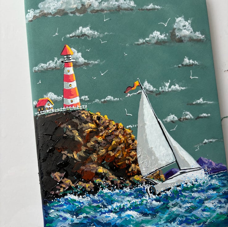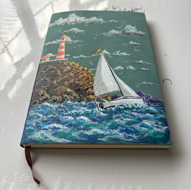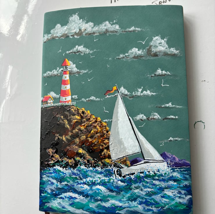 A hand painted and sealed faux leather bound nautical journal by Andrew Jenkins