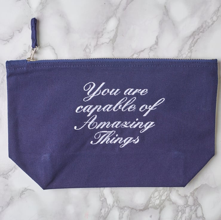 100% Brushed Cotton canvas pouch with embroidered words in the front. The embroidery will be long wearing, it will not peel or fade. Suitable as a gift all year round.