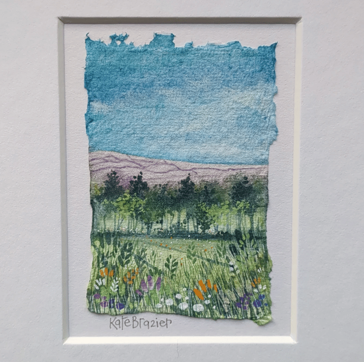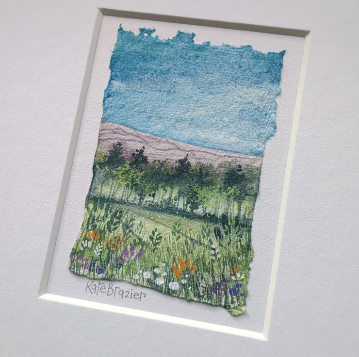 This piece is created using gouache paint on handmade Khadi paper, it has been worked into with water soluble pencils and Luminance colourfast pencils. It is then held in place with artist quality Neutral pH adhesive and float mounted in a custom mount.