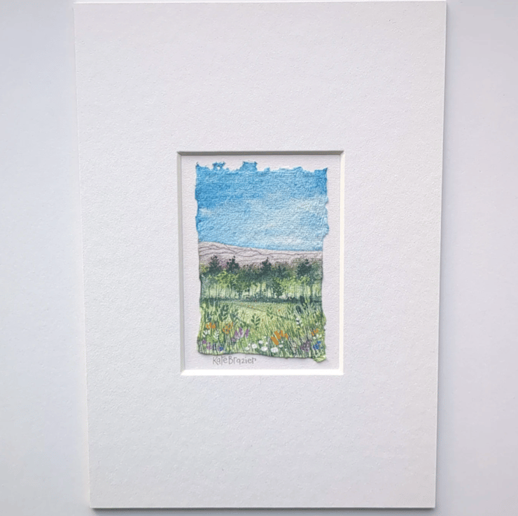 'Miniature Spring Flower Meadow' is a tiny, mixed media miniature float mounted into a custom A5 mount.