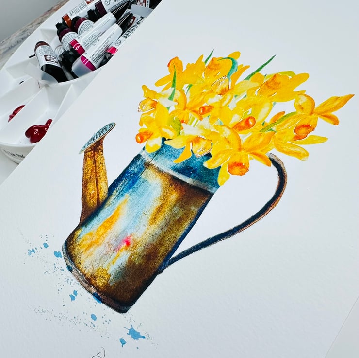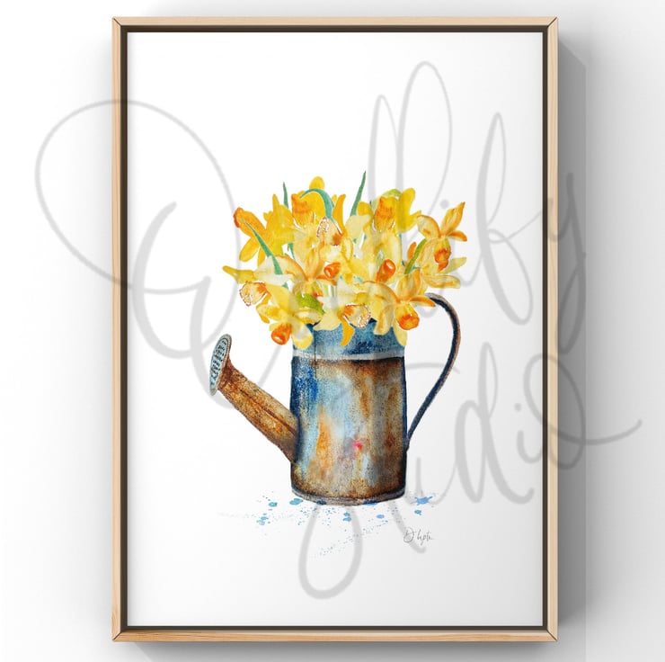 Lovely and bright daffodils in a vintage watering can.
