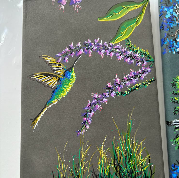A hand painted and sealed faux leather bound journal by Andrew Jenkins