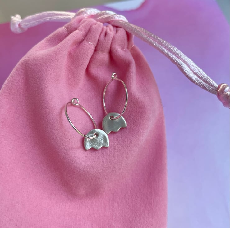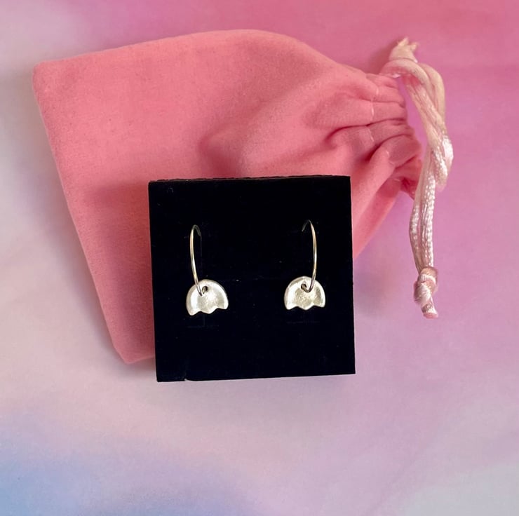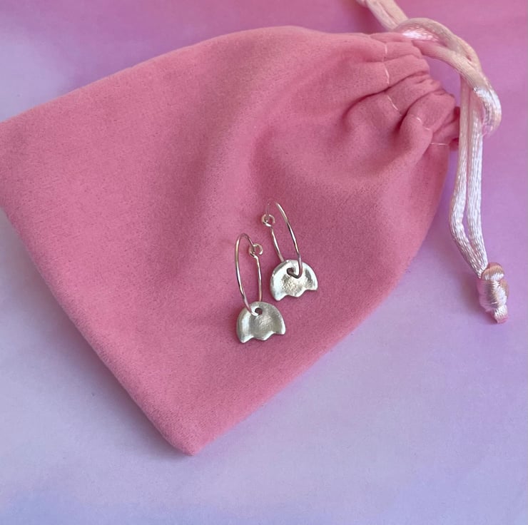 Delicate earrings made with 999 silver (99.9% pure silver). The hoops are 925 Sterling Silver. Lightweight and comfortable to wear.