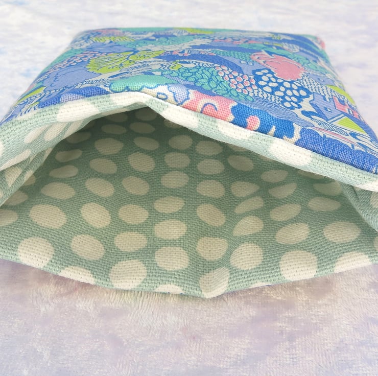 It has been backed with a lightly padded interfacing, and lined with a contrasting spotty cotton.