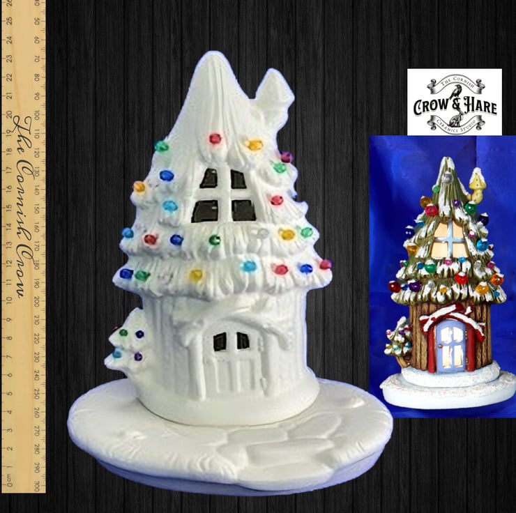 Do you enjoy painting with Acrylics? Then why not try our exquisitely detailed 'Paint your own' magical light up ceramic Christmas Tree Fairy Cottage lantern.