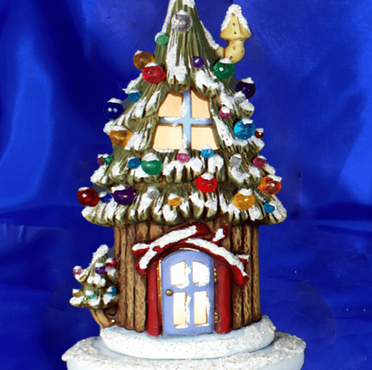 Size: Our ceramic Christmas Tree Fairy Cottage lantern is approximately: 21cm H x 13cm W