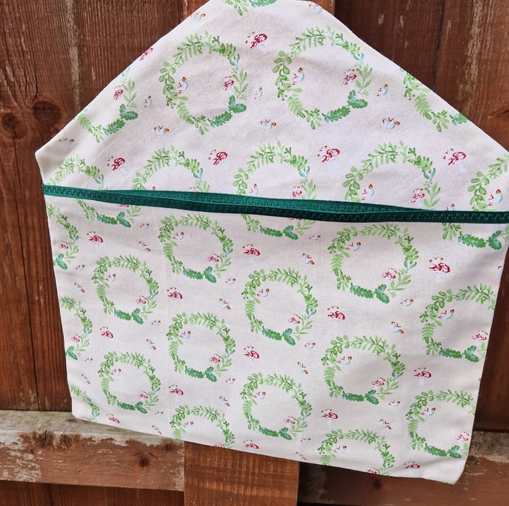 Cotton peg bag....n hanger supplied with the bag. Try a childs hanger or trouser hanger.