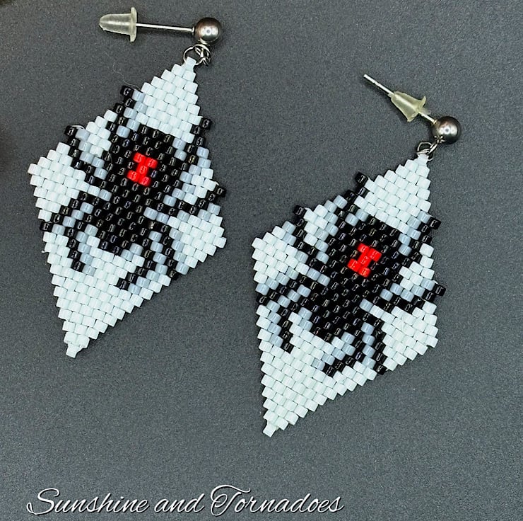 These fabulous brick stitch diamond earrings have been handmade using Miyuki Delica Beads and Fireline beading thread.