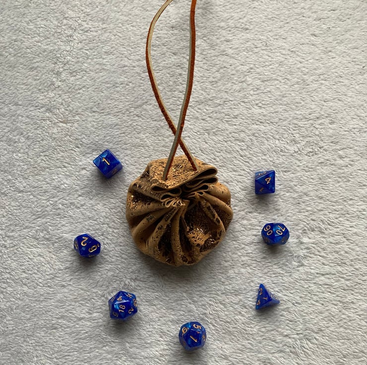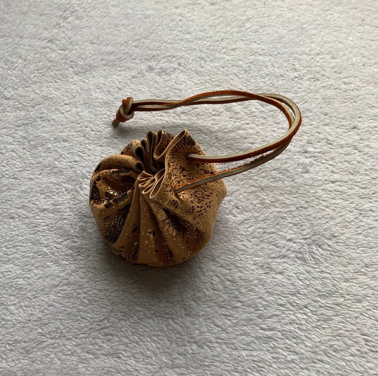 Small metallic gold coloured leather drawstring pouch (Dice NOT included)