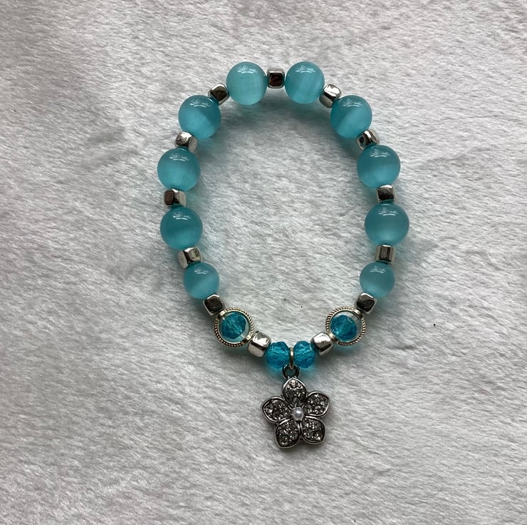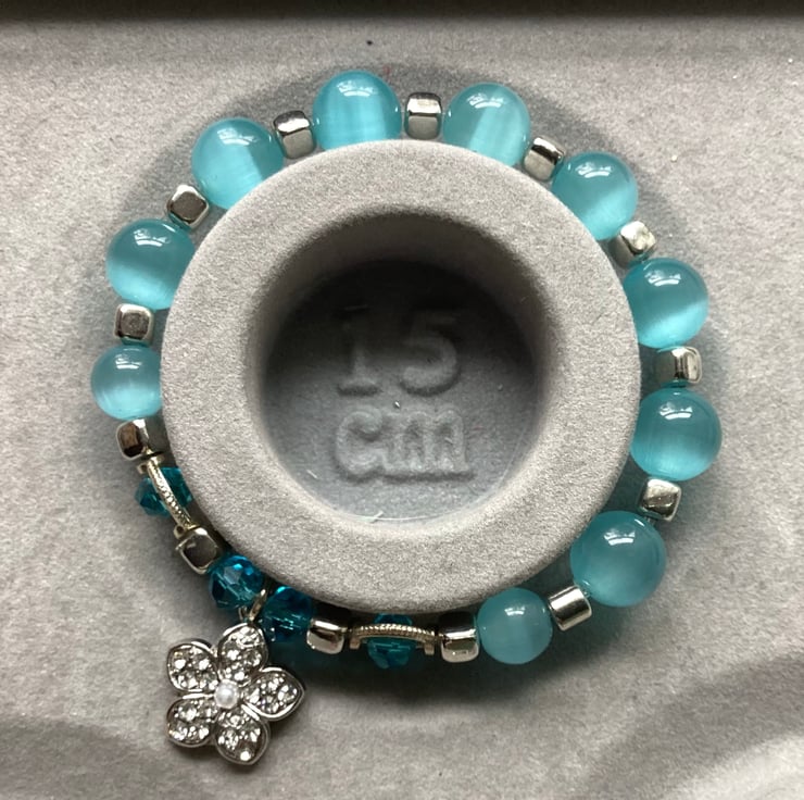 This bracelet made by me in my home studio in West Midlands. Bright, easy to use and eye catching accessories. I’ve used Cats Eye Beads and Glass Czech Beads. Stretch Magic 0.7mm Bead and Jewellery Cord Been double wrap for better strength. Please note: Colours may vary due to different viewing platforms and devices. Measurement in cm.