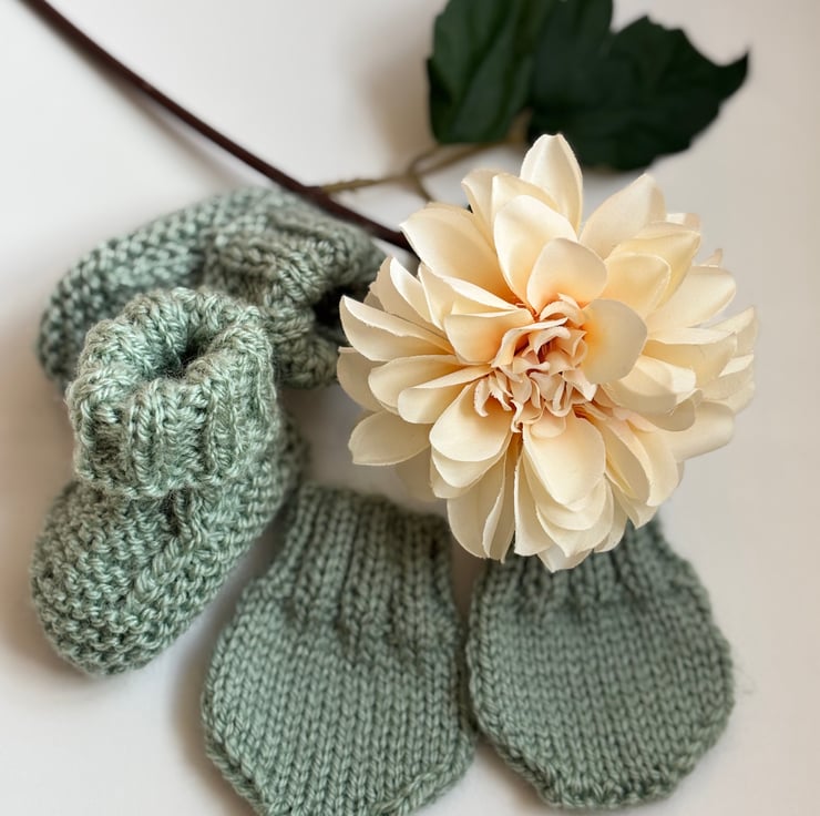 This beautiful gift set consist of baby booties and anti-scratch mittens carefully knitted from soft, anti-allergic baby yarn.