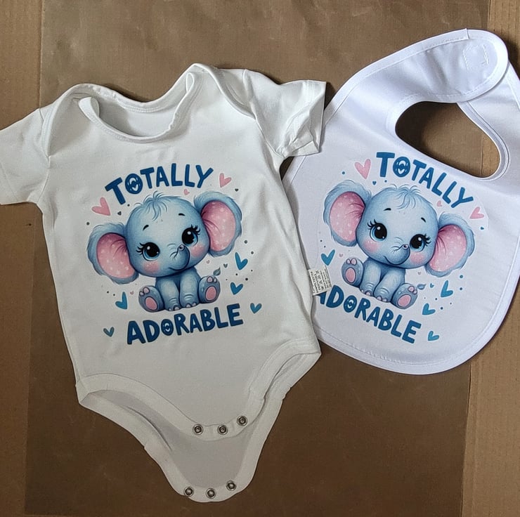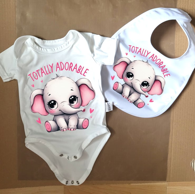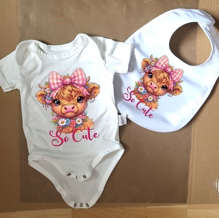 Beautiful elephant and highland cow designs for baby 0-3 months with bib with same design