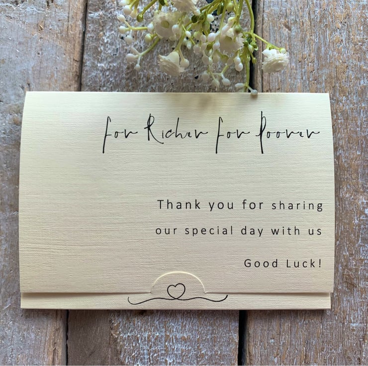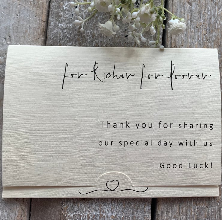 Made to fit a standard £1 Scratch Card. Carefully made to a high standard for your special day. Size of envelope 130x94mm. Thank you