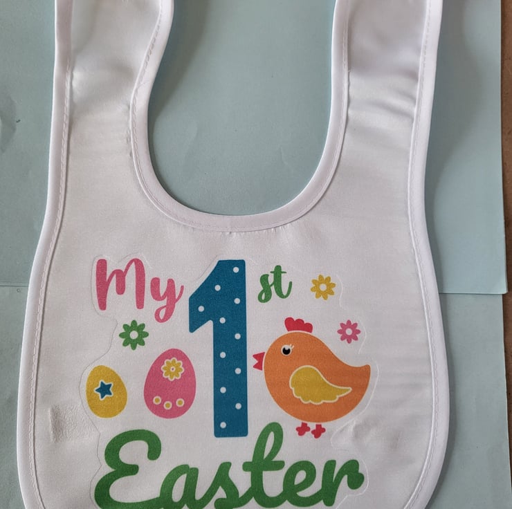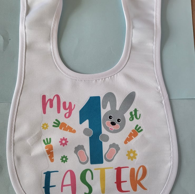 Baby's 1st Easter bib, 2 different designs to choose from on satin bib with velcro fastener