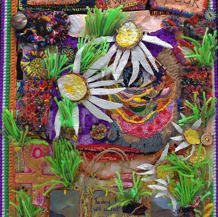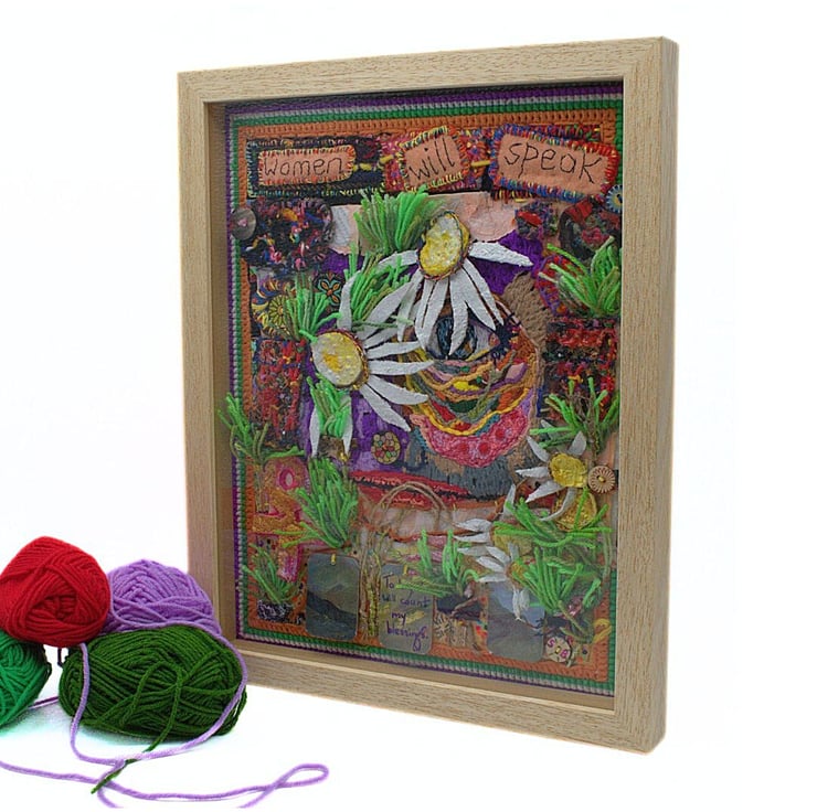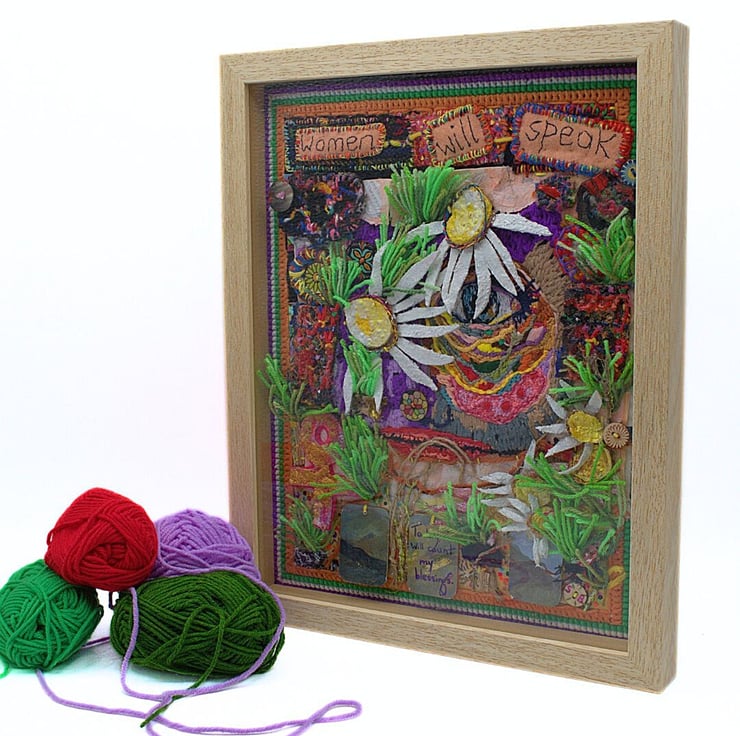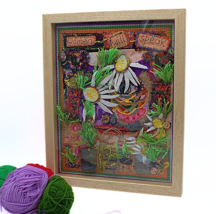 (049) This original textile artwork is called, 'Today I Will Count My Blessings'. It is based on my interest in needlework and how it connects to personal and political histories through time. It would make an ideal gift for anyone with an interest in politics and needlework.