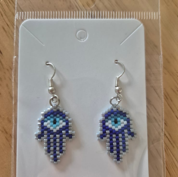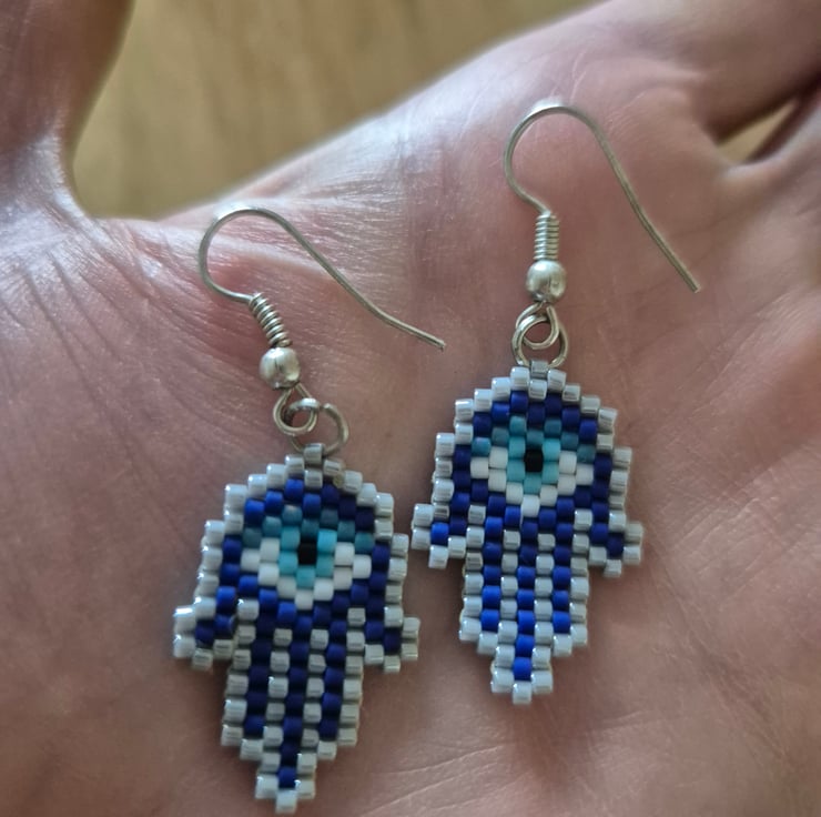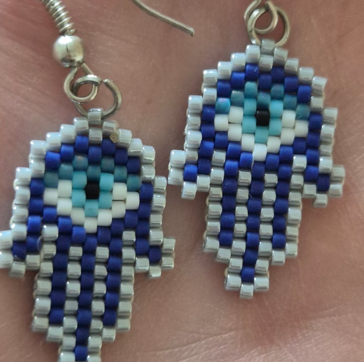 Hamsa Hand Earring,Peyote stitch,Miyuki Delica Beads