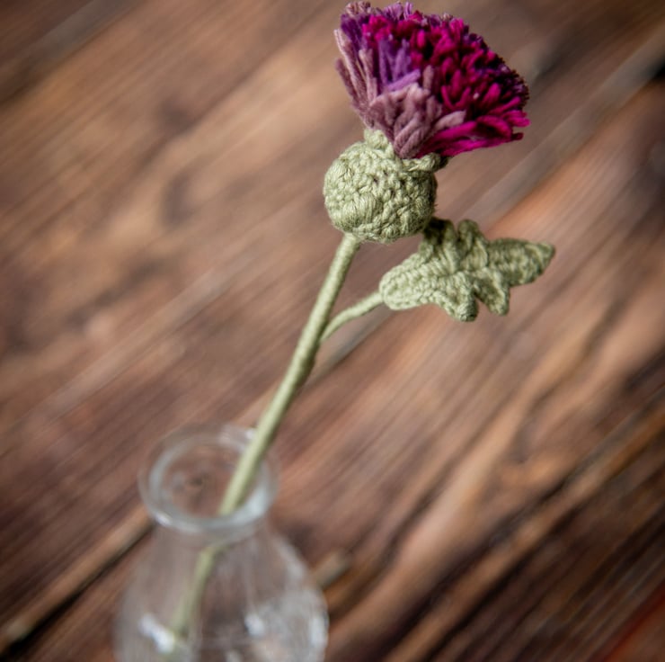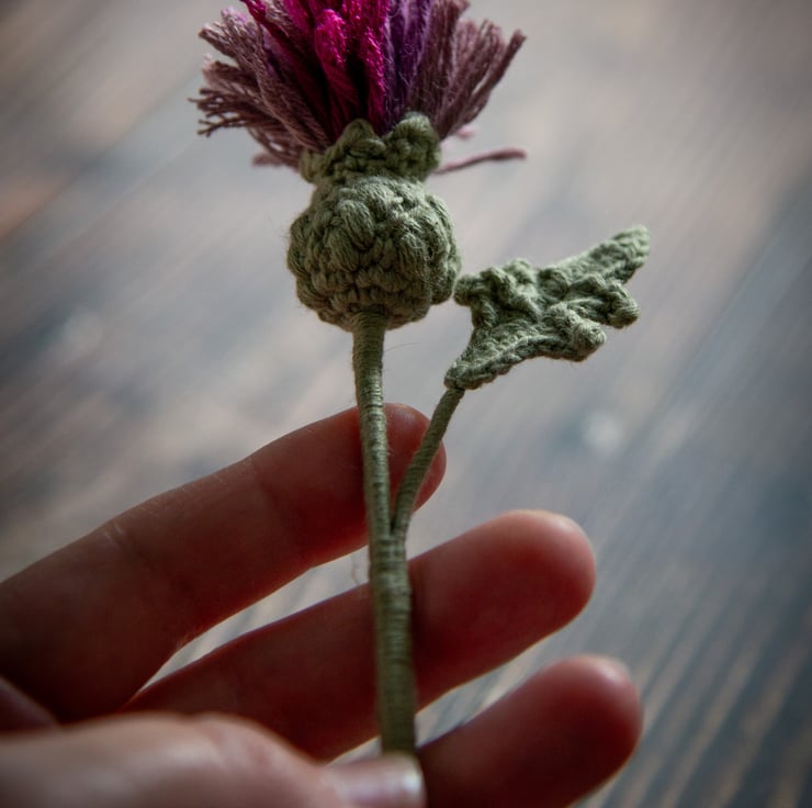 Thistle Flower Crochet Bookmark - a perfect gift for a book lover or a plant lover, someone of romantic nature, stationery fan or flower enthusiast. Can also be used as a decor item, it looks as good in a vase as it looks in a book. Thistles symbolise devotion, bravery, determination, and strength.