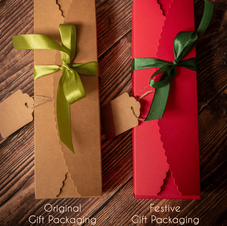 “Bookmark with Gift Packaging” option includes a bookmark itself and Gift Packaging (Please choose between Original Craft Box and Festive Red Box): 350gsm craft paper gift box, green tissue paper, green ribbon and a gift tag. Gift Box dimensions : 23 x 7 x 4cm. Option with packaging doesn't fit through a standard letterbox.