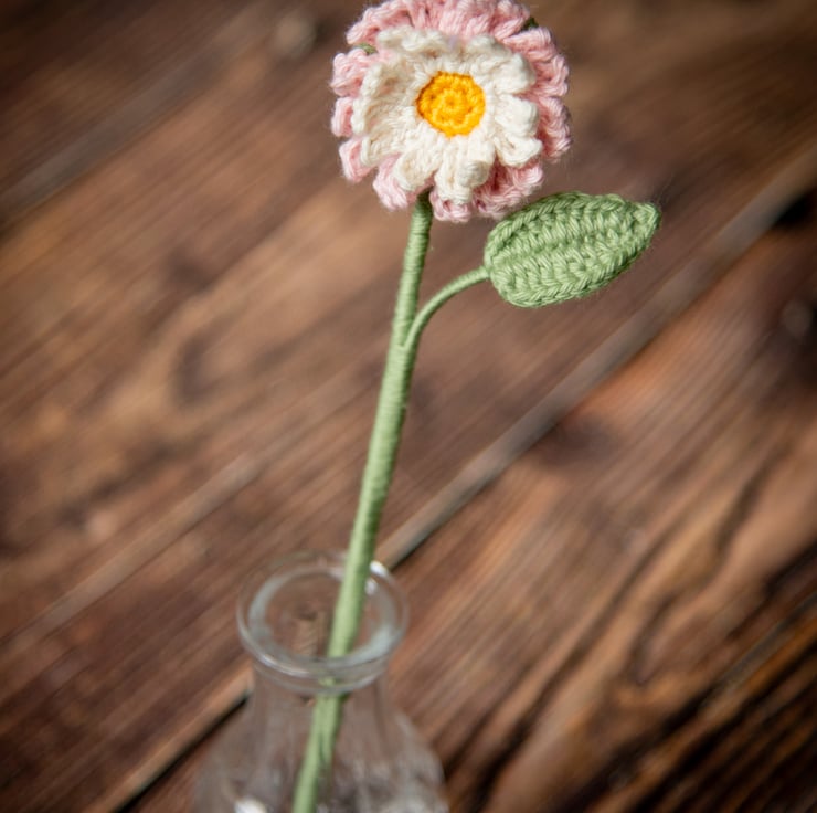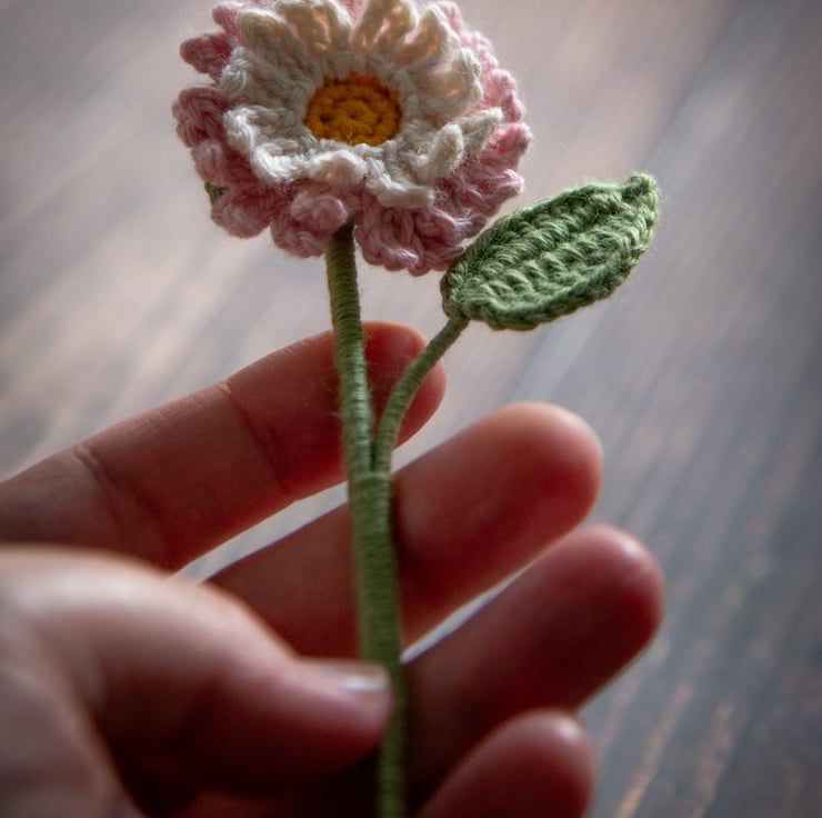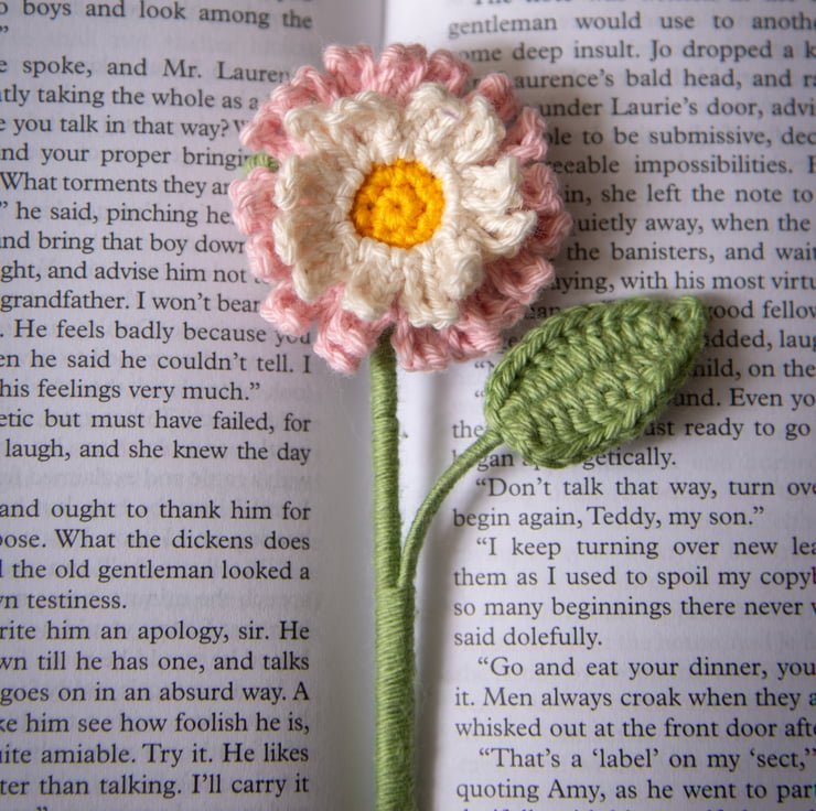 Pink Daisy Crochet Bookmark - a perfect gift for a book lover or a plant lover, someone of romantic nature, stationery fan or flower enthusiast. Can also be used as a decor item, it looks as good in a vase as it looks in a book. Daisies symbolise purity and innocence, pink daisies in particular are associated with gentleness, love and romance. Daisies are April's Birth flowers.