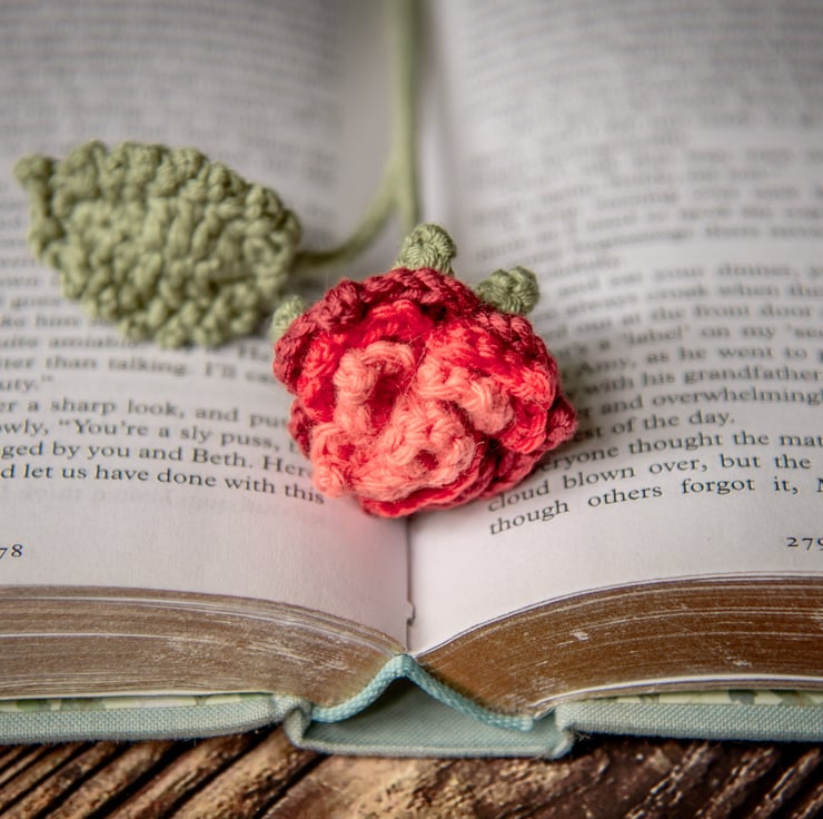 Red Rose Crochet Bookmark - a perfect gift for a book lover or a plant lover, someone of romantic nature, stationery fan or flower enthusiast. Can also be used as a decor item, it looks as good in a vase as it looks in a book. Red roses are a universally recognized symbol of love, passion, and romance. Roses are also June Birth Flowers.
