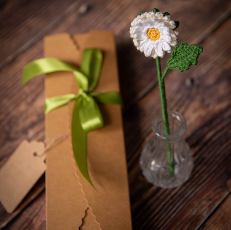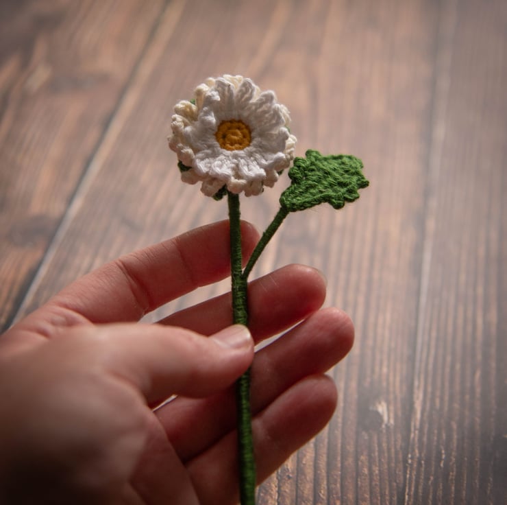 Oxeye Daisy Crochet Bookmark - a perfect gift for a book lover or a plant lover, someone of romantic nature, stationery fan or flower enthusiast. Can also be used as a decor item, it looks as good in a vase as it looks in a book. Daisies symbolise purity, innocence and new beginnings. Daisies are April's Birth flowers.