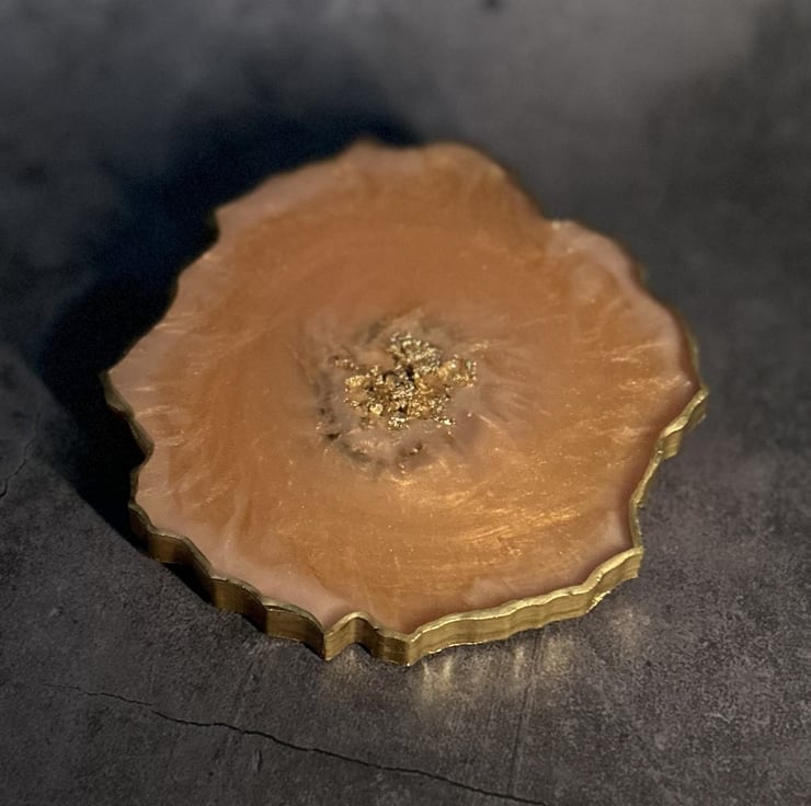 Hold the front page "Absolutely stunning geode style coaster in a sumptuous gold and subtle pink colour scheme" spotted gracing someone's table.