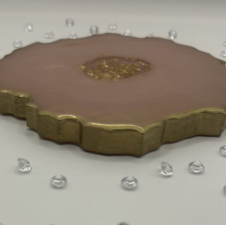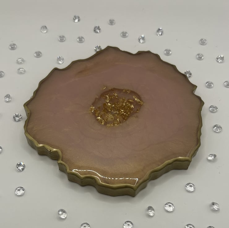 Hold the front page "Absolutely stunning geode style coaster in a sumptuous gold and subtle pink colour scheme" spotted gracing someone's table.