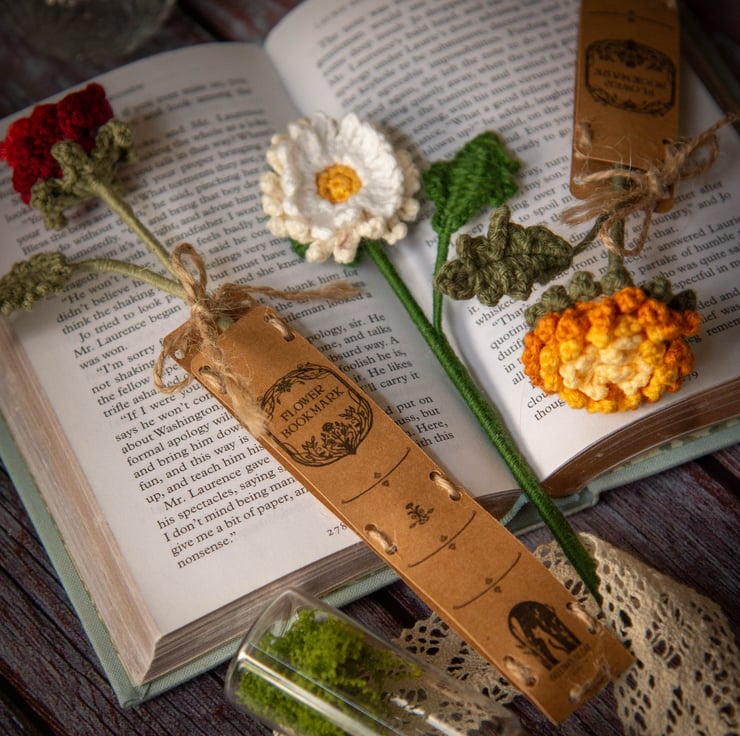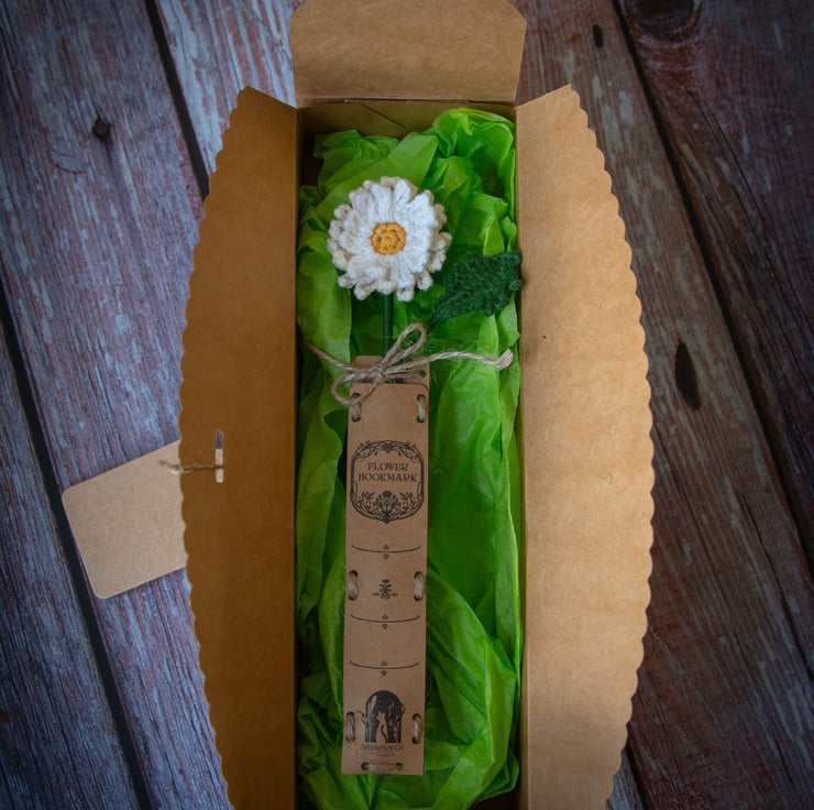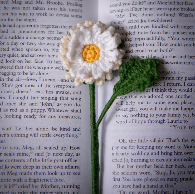 Daisy Crochet Bookmark - a perfect gift for a book lover or a plant lover, someone of romantic nature, stationery fan or flower enthusiast. Can also be used as a decor item, it looks as good in a vase as it looks in a book. Daisies symbolise purity, innocence and new beginnings. Daisies are April's Birth flowers.