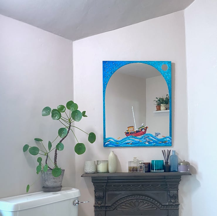 I have always loved working with paper mache and am inspired by land, sea and cityscapes. Each of our mirrors are individually made with love and care in unique designs. The paper mache has a gently textured surface, is painted with acrylic paint and then protected with a matt varnish making it suitable for all rooms in the home. Your mirror will arrive beautifully wrapped and ready to hang.