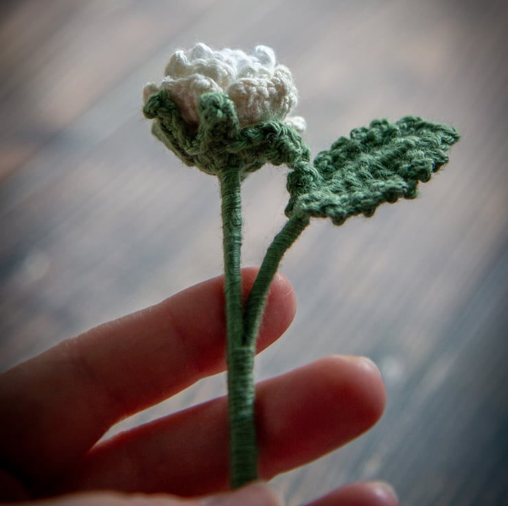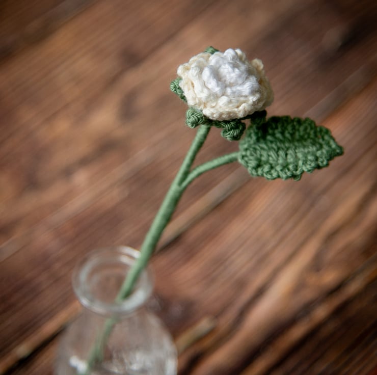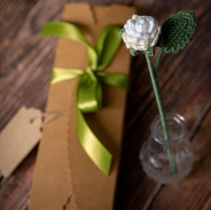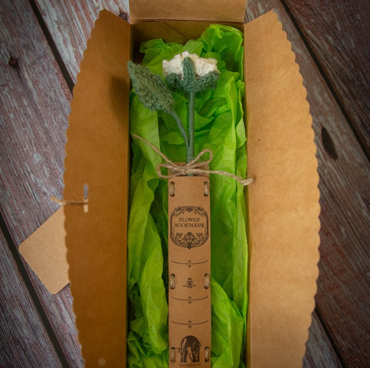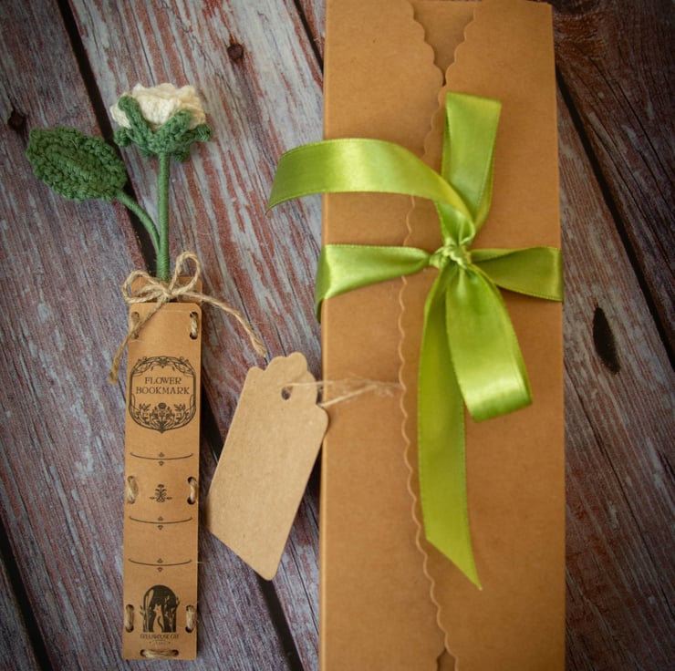 White Rose Crochet Bookmark - a perfect gift for a book lover or a plant lover, someone of romantic nature, stationery fan or flower enthusiast. Can also be used as a decor item, it looks as good in a vase as it looks in a book. White roses symbolise purity, youthfulness, innocence, young love, and loyalty. Roses are also June Birth Flowers.