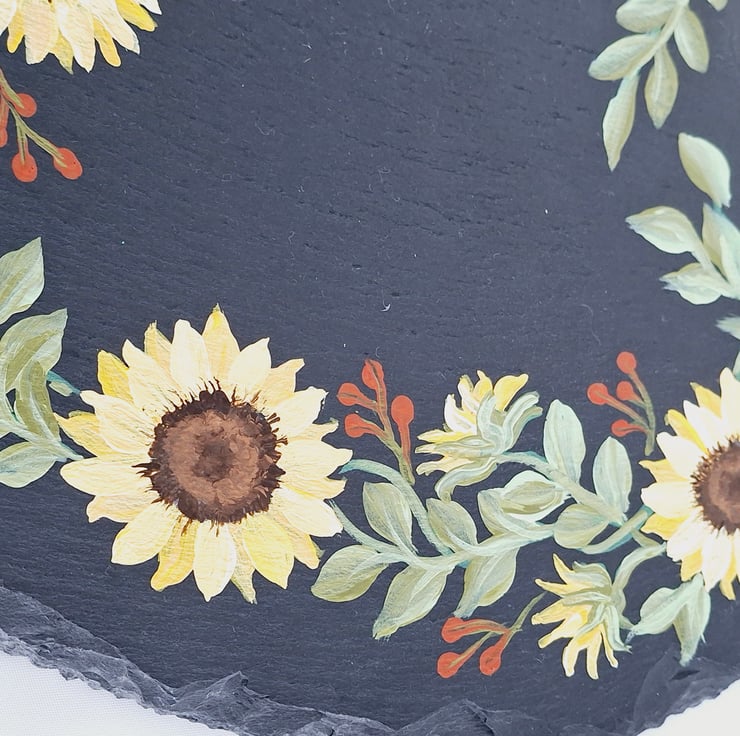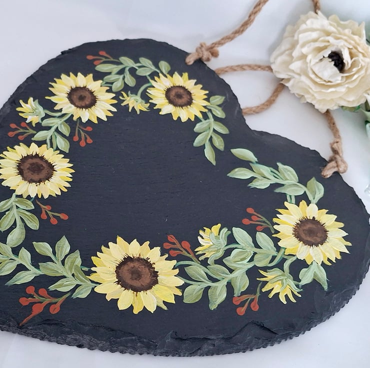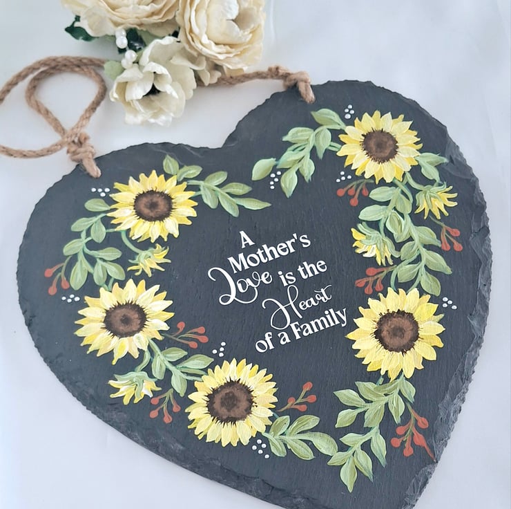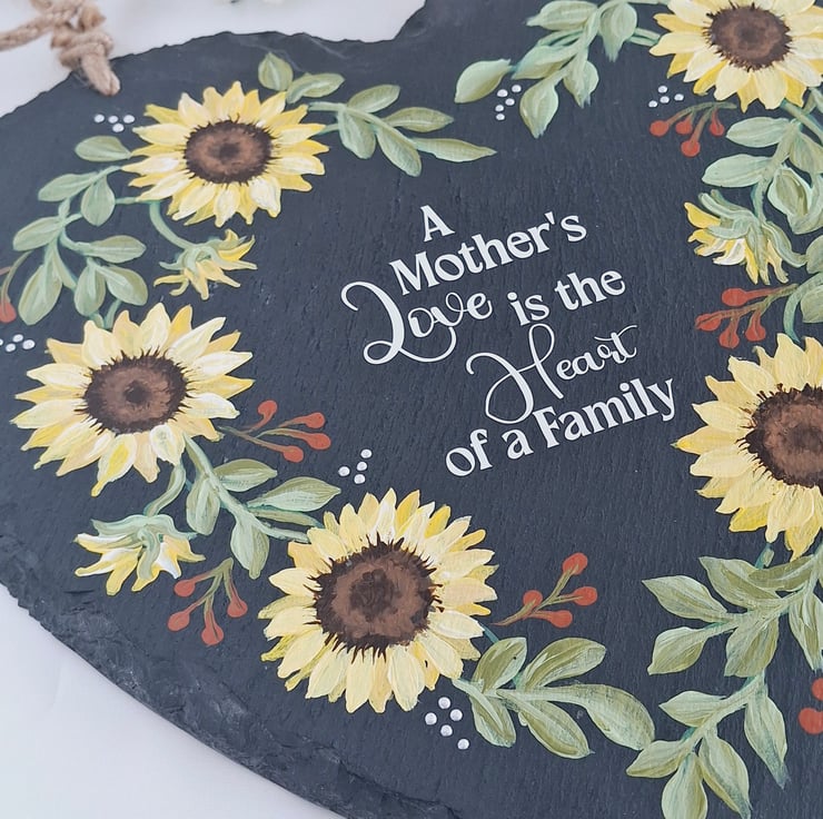 This large 25cm slate heart has been hand painted with a pretty sunflower wreath design and features a lovely quote for your special Mum. A lovely gift to treasure for a Birthday or for