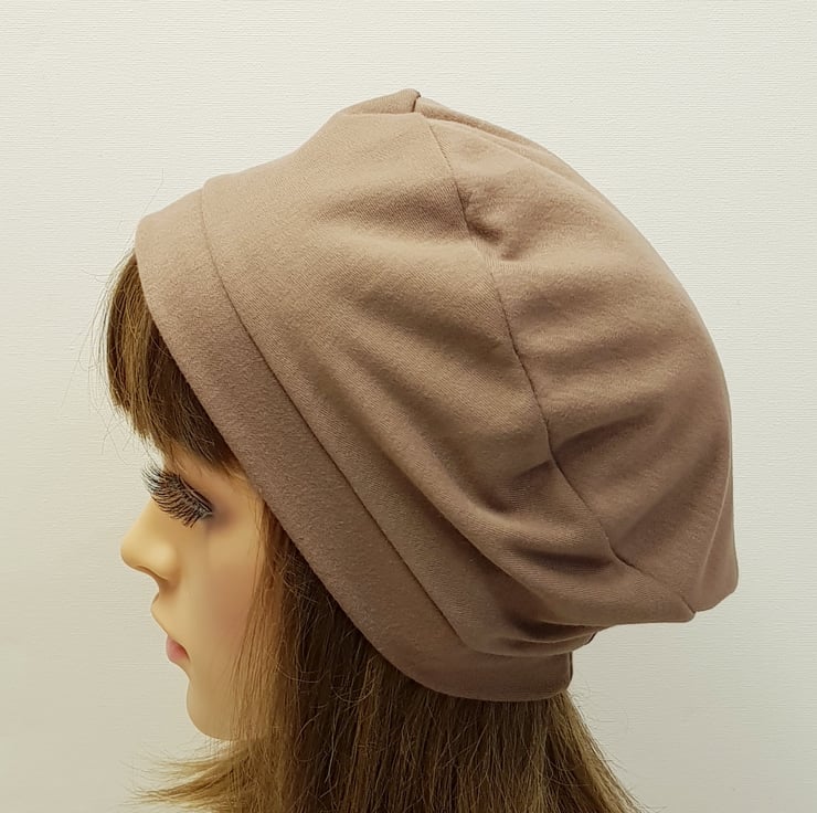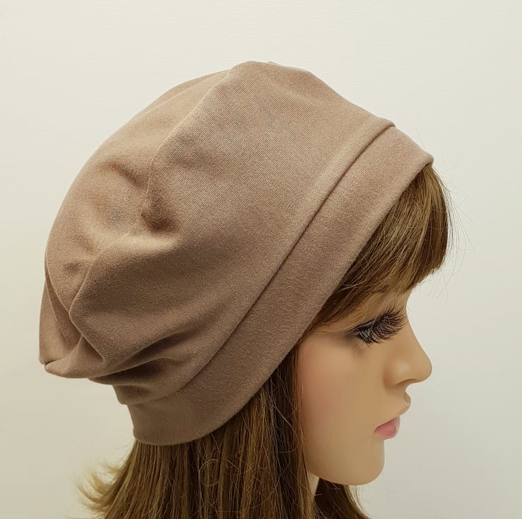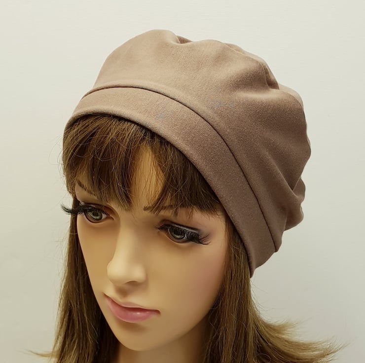 Lightweightbrown cotton jersey beret for women, unlined tam, spring autumn hat