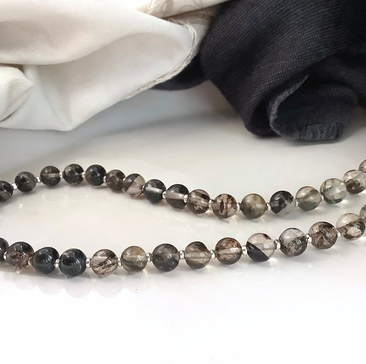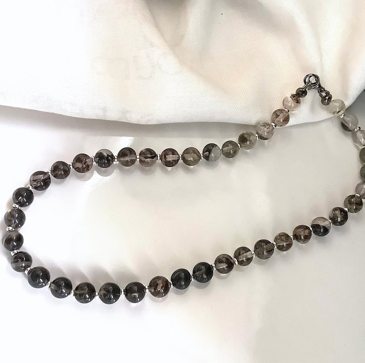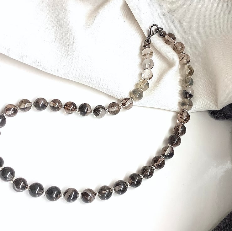 graduating colours of light to dark grey quartz with small silver coated beads make this elegant choker necklace