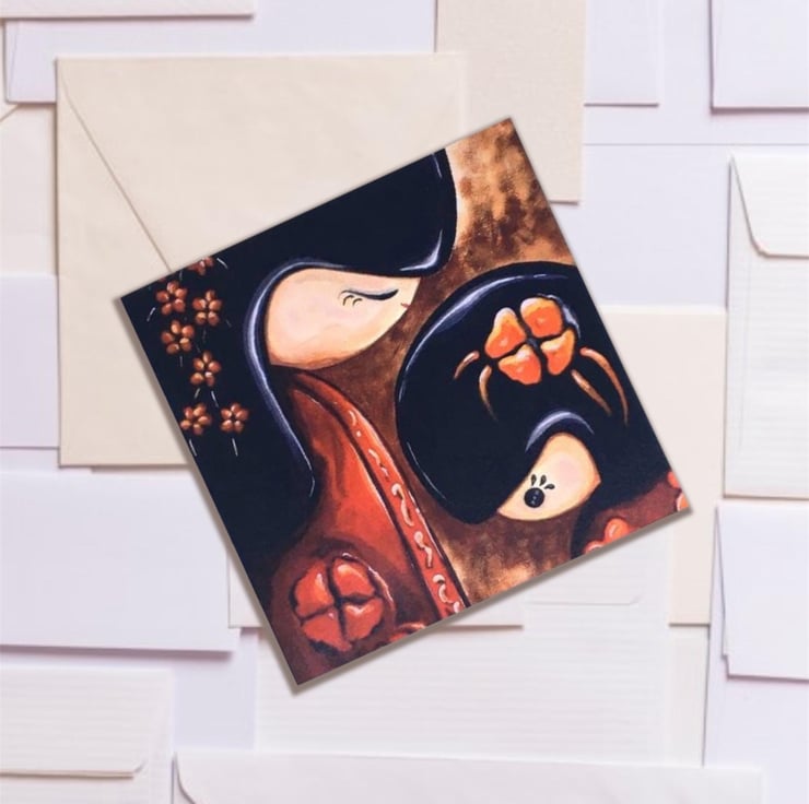Kokeshi Doll inspired 'Mother and Child' Art Print Greetings Card