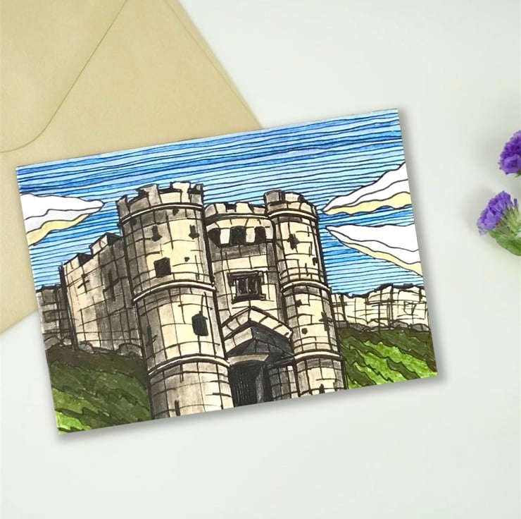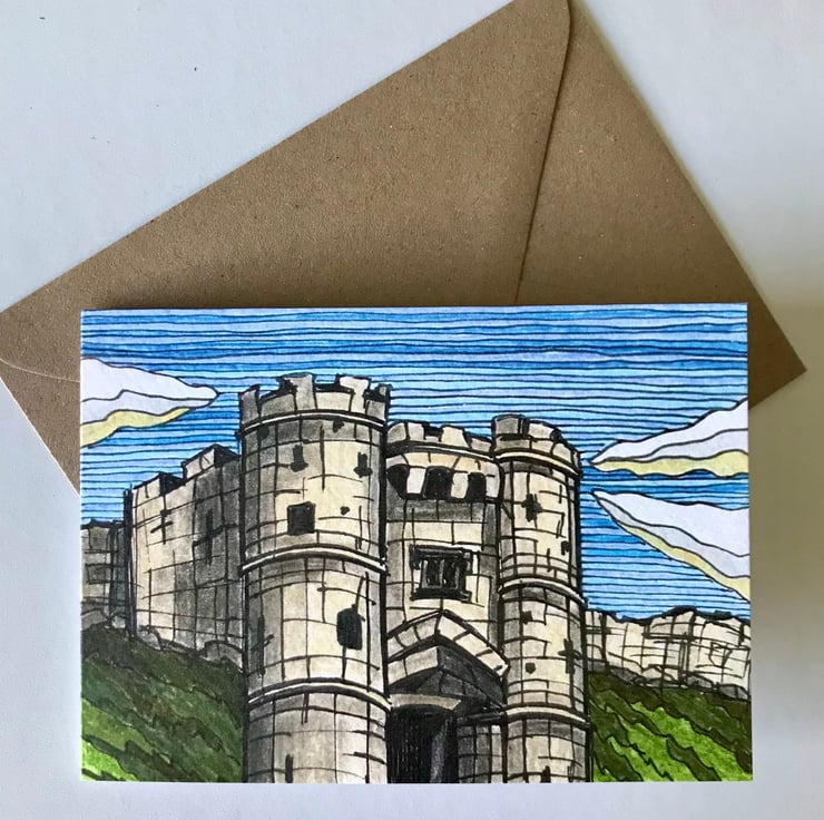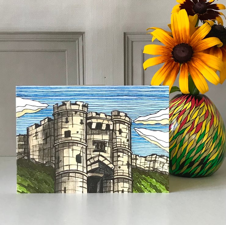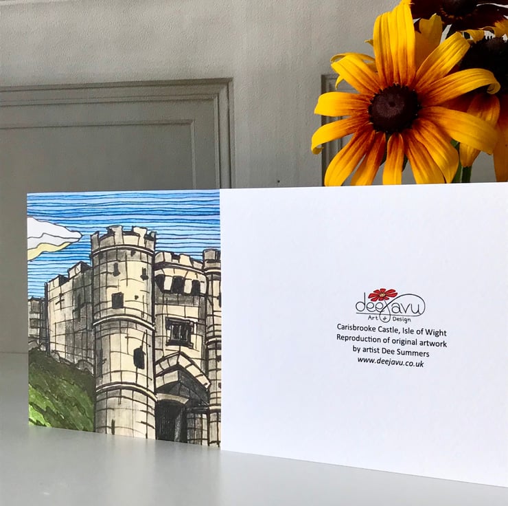 Isle of Wight art print greetings card featuring the historic landmark that is Carisbrooke Castle. This is a reproduction print of my original ink and pencil drawing.