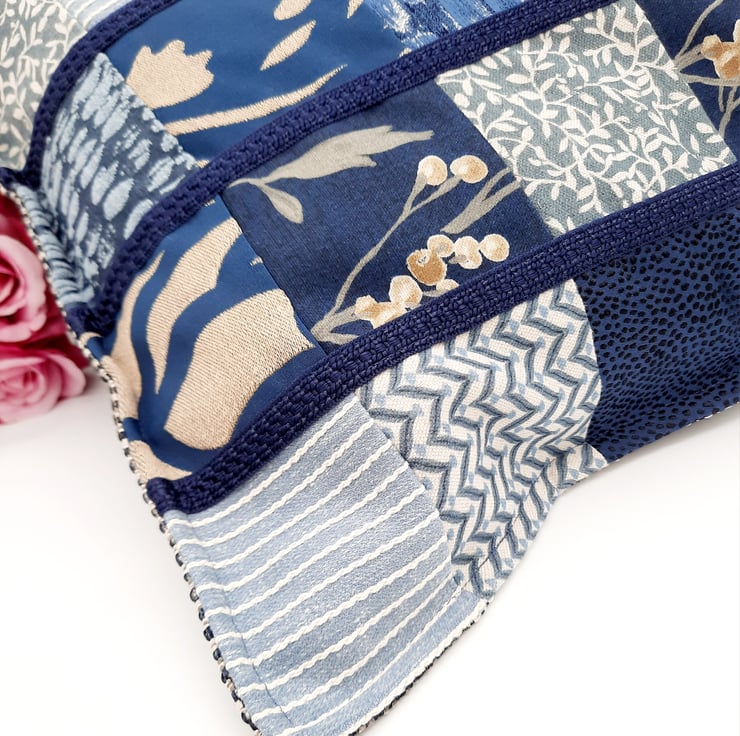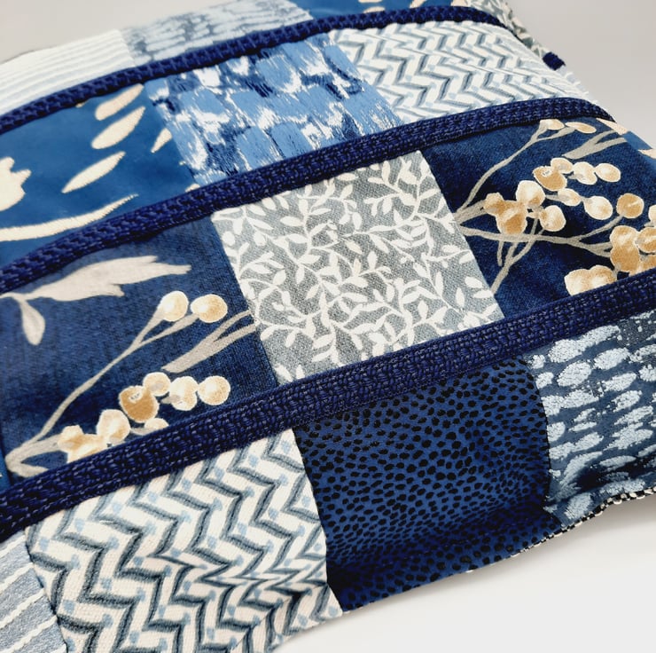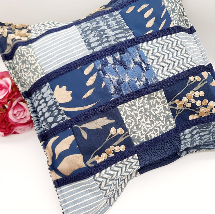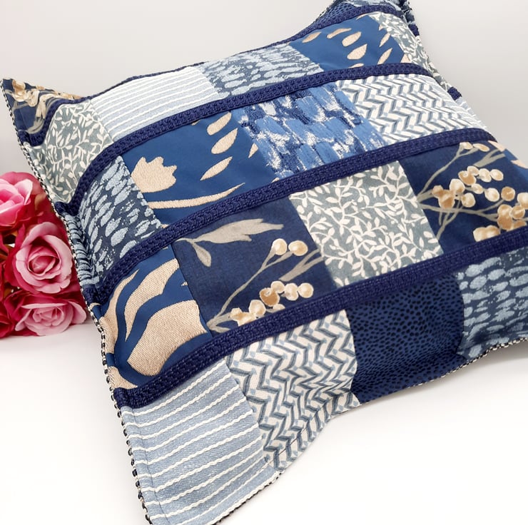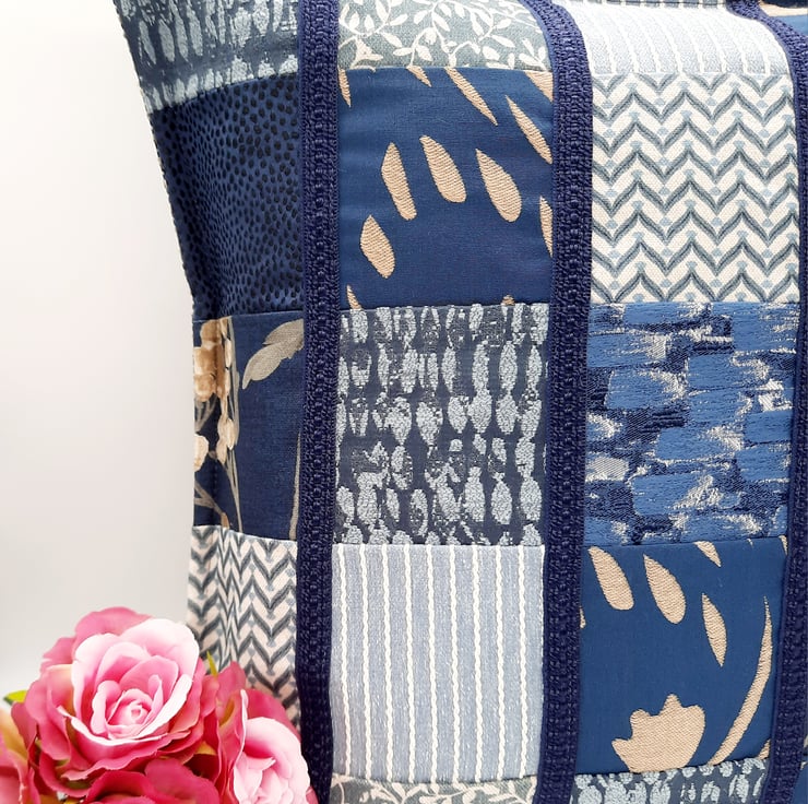 Multiple fabrics with different textures have been used to create this striking cushion.
