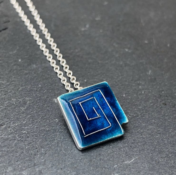 Blue Enamel Pendant, enamel necklace, art deco necklace, enamel jewellery, her