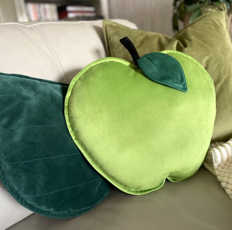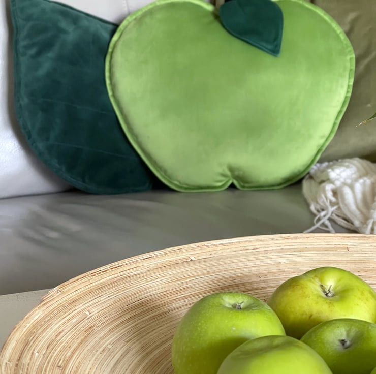 Add a slice of green freshness to your home! Order now and let this green apple pillow bring character to your space.