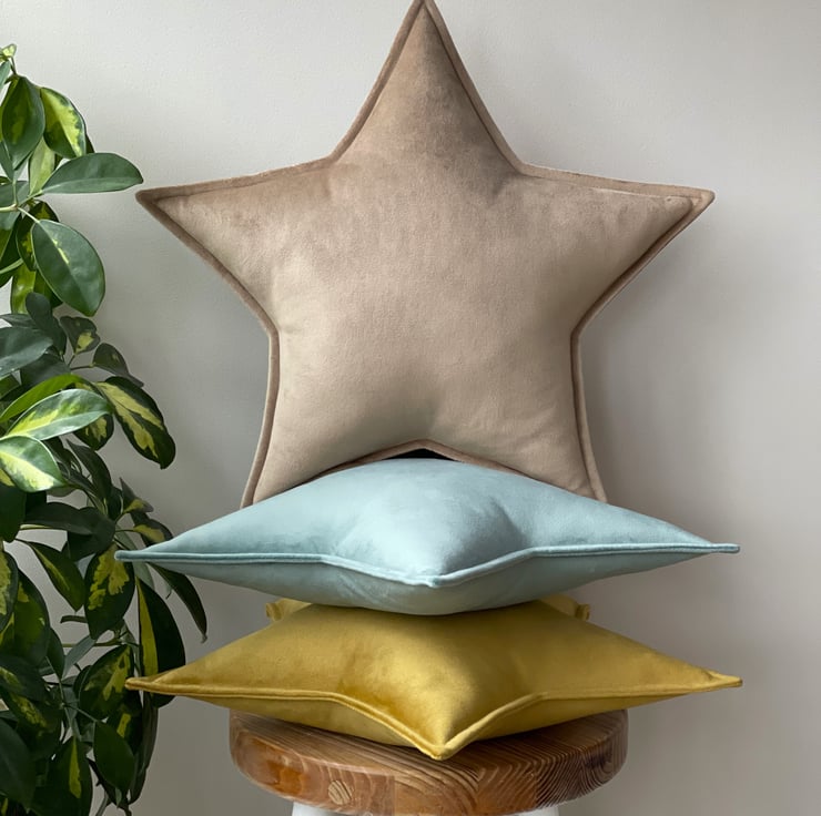 Add warmth and subtle elegance to your space with this stunning Biscuit Beige Star-Shaped Cushion. Crafted from luxurious plush velvet, this pillow is the perfect way to bring a touch of cosmic magic into any room. Its soft color and smooth texture create a beautiful balance of comfort and style.