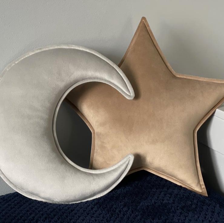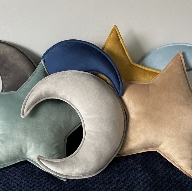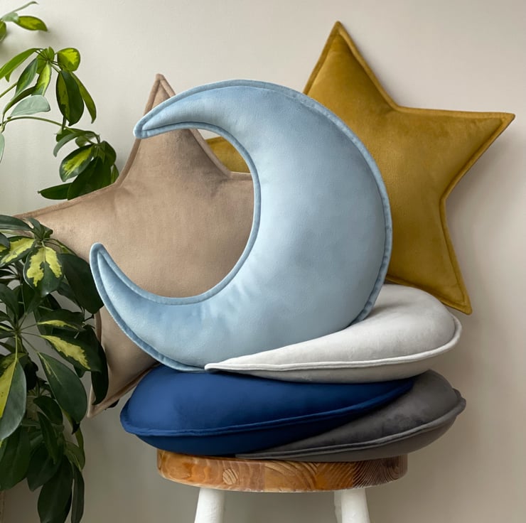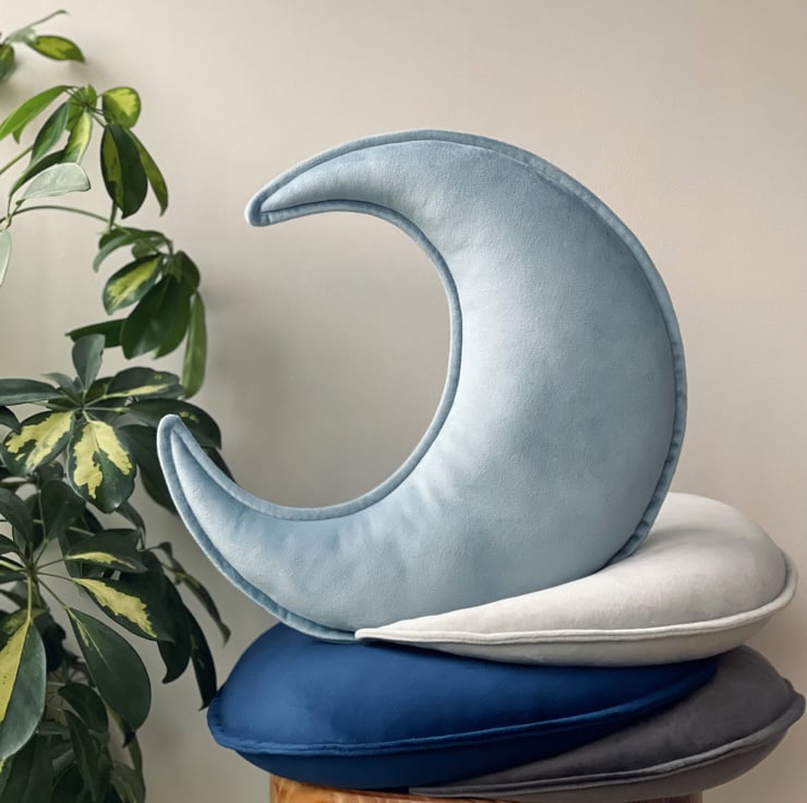 Whether you're looking to bring a subtle celestial theme into your space or searching for the perfect gift for someone special, this moon-shaped cushion is sure to delight. Pair it with other cosmic-inspired pillows to create a harmonious and enchanting atmosphere, or let it stand alone as a unique, luxurious piece.