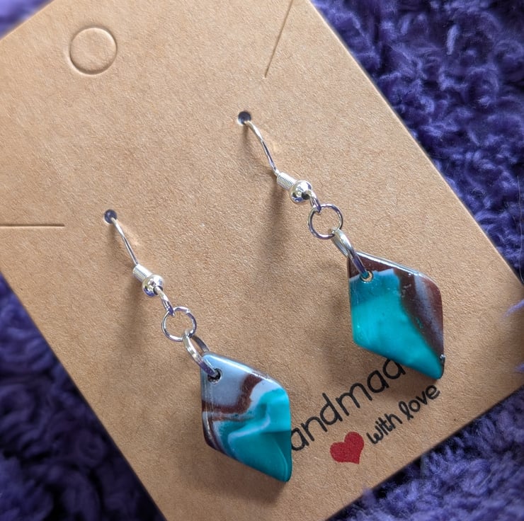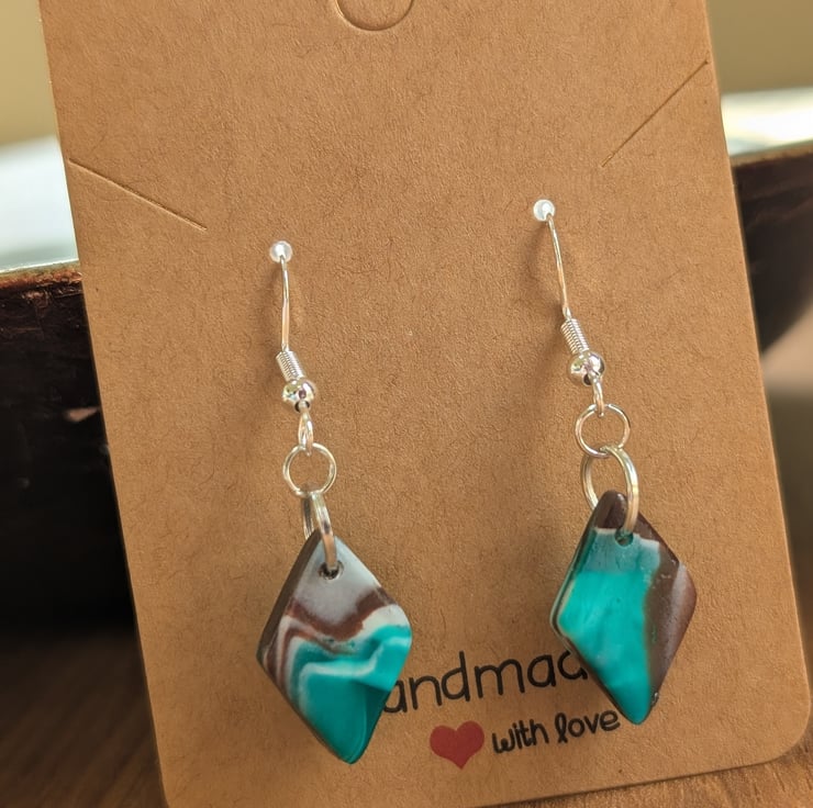 Gorgeous homemade Polymer Clay earrings, hung on silver plated hypoallergenic hooks.