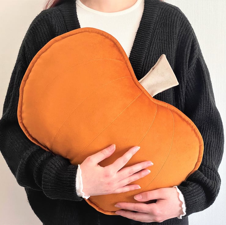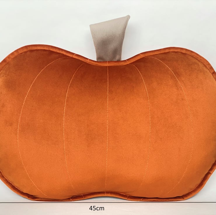 Add a touch of autumn warmth and charm to your home with this beautiful rust velvet pumpkin-shaped cushion! This adorable cushion is the perfect addition to your bed, sofa, or favorite armchair, beautifully complementing any space with its cozy, seasonal vibe. It's a wonderful decor piece for the harvest season and Halloween, bringing the spirit of fall into your home.
