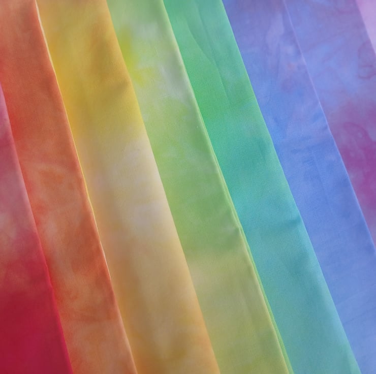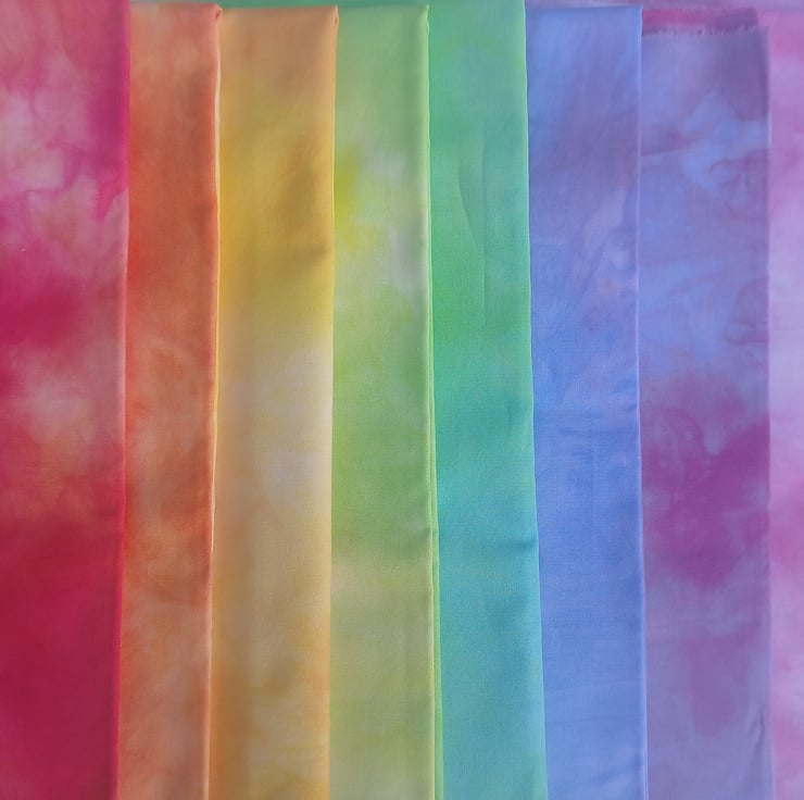Set of 8 spaced dyed cotton fat quarters in a lovely rainbow of colours.