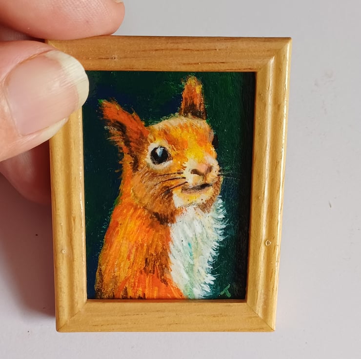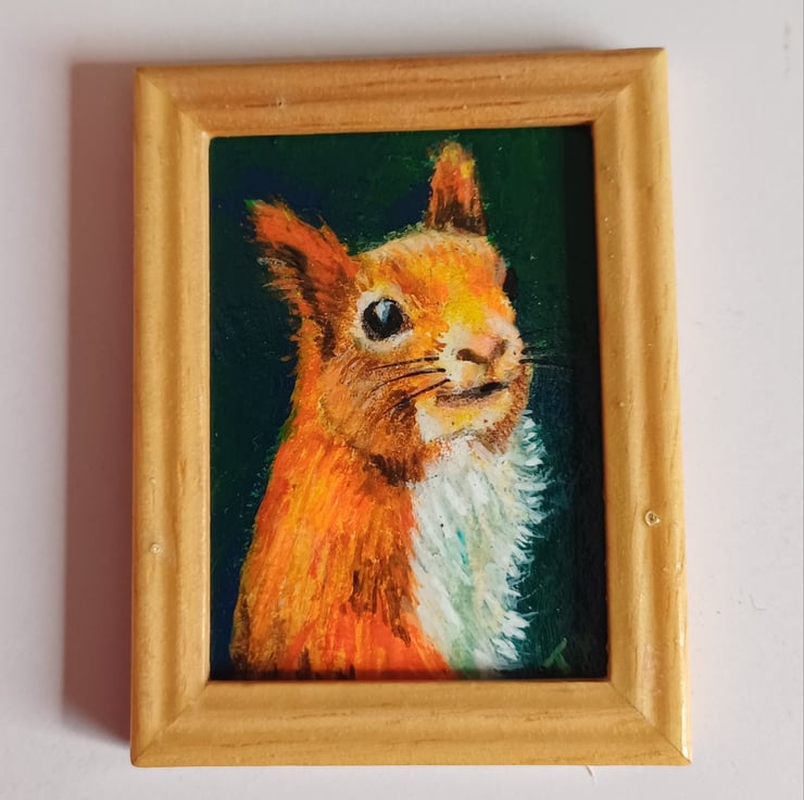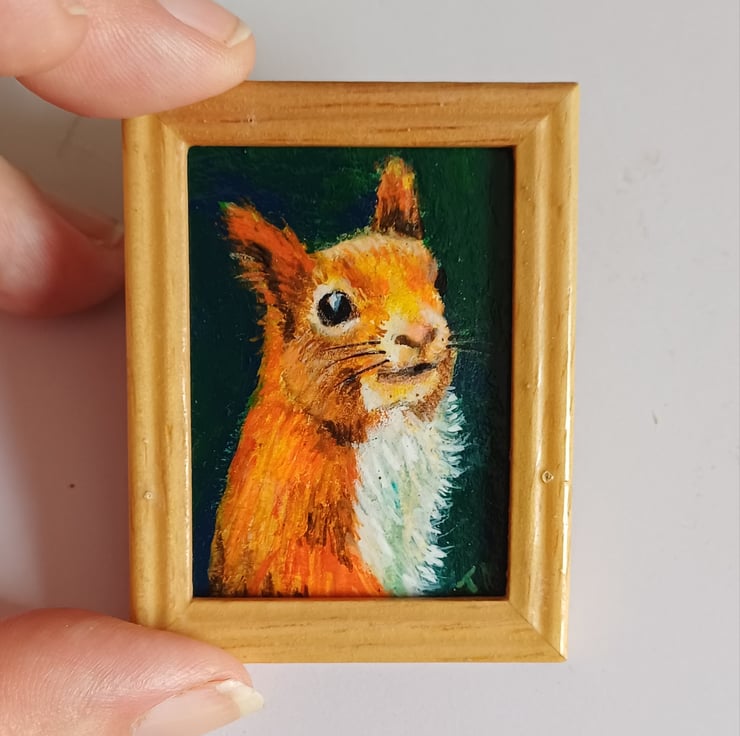 An original oil painting 'Red Squirrel Portrait' Miniature Painted by Traceyann Papworth.